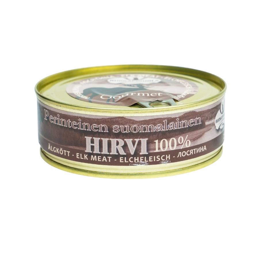 Valikoiman voimakkain liha. Kunnon riistaa. Hirvenliha on perinteisesti keittoon todella hyvää, mutta saapa tästä salaatin joukkoon herkullisen proteiinin käden käänteessä. Purkki auki, liha pihalle, kuutioiksi ja sekaan vain. Tämä tuote on niin vähänrasvainen, että jos syö mahdollisimman vähärasvaista ruokaa, niin tää on sun valinta jo pelkästään sen vuoksi. Todella maistuva riistaherkku. Ja suomalaista, tottakai.