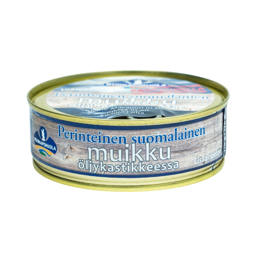 Perinteitä kunnioittaen valmistettu muikkusäilyke. Nämä maistuvat juuri siltä, miltä muikun pitää maistua, kun se tehdään konstailematta, ilman kikkailuja. Perusmausteet, puhdas suomalainen järvikala, ilman lisäaineita tai muutakaan ylimääräistä, niin niistä ne hyvät maut tulee.